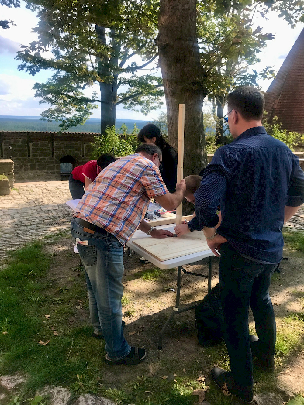Sicher haben auch Sie in Ihrer Kindheit mal mit einer Steinschleuder gespielt. Bei den Teamhelden denken wir direkt einige Nummern größer: Als besonderen Programmpunkt für Ihren Betriebsausflug oder Ihr Teamevent werden Sie mit Ihren Kolleginnen und Kollegen eigene Katapulte bauen. Die Bauteile könnten ungewöhnlicher nicht sein: Von Suppenkellen und Nudelsieben, über Holzreste und Kabelbinder ist alles dabei. Jetzt sind Sie gefragt: In kleinen Teams überlegen Sie sich ein Konzept und stöbern im Teamhelden-Baumarkt nach passenden Bauteilen. Dann geht es mit Hammer, Säge und Akkuschrauber ans Werk. In Teams bauen Sie aus einfachsten Bauteilen ein funktionstüchtiges Katapult. Die treffsicherste und schönste Schleuder wird im Anschluss gemeinsam gekürt. Um extra Bauteile zu erhalten, warten kurzweilige Mini-Challenges auf Ihre Mitarbeiterinnen und Mitarbeiter, bei denen es um körperlichen Einsatz, Wissen, Geschick und Kreativität geht. Hier können alle Teilnehmer ihre persönlichen Stärken einbringen und sich besser kennen lernen.