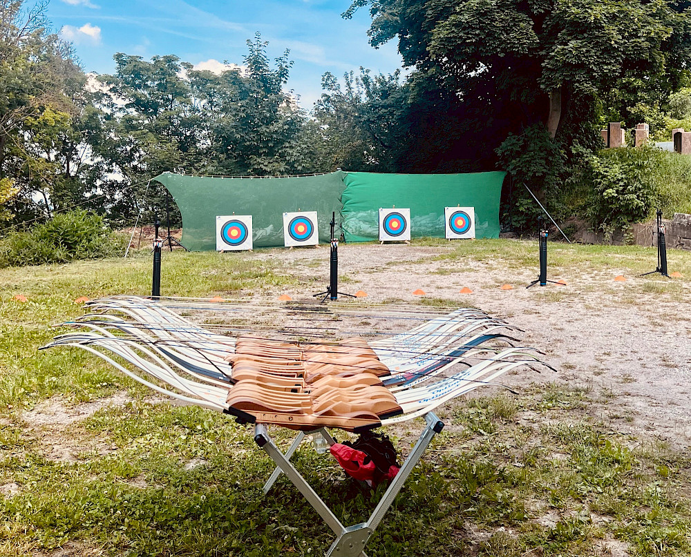 Am Ziel angekommen, wartet bereits die finale Herausforderung auf Sie. Beim intuitiven Bogenschießen, dem Bogenschießen ohne technische Hilfsmittel, geht es darum, nach einer ausgiebigen Übungsphase bei einen kleinem Wettkampf mit Spaß und Spannung zu ermitteln, wer als bester Schütze die goldene Robin-Hood-Mütze aufgesetzt bekommt und seinen Gewinn mit den „Bedürftigen“ teilen darf.