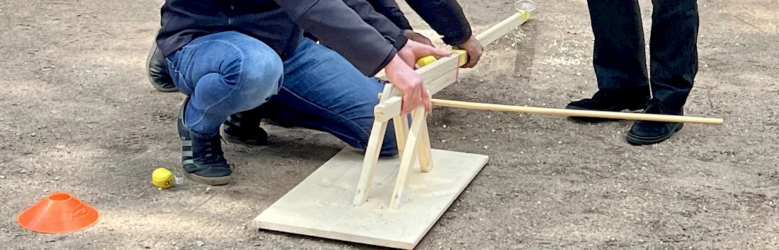 Machen Sie Ihren Betriebsausflug, Ihre Firmenveranstaltung oder Ihr Teamevent zu einem besonderen und außergewöhnlichen Erlebnis für Ihre Mitarbeiterinnen und Mitarbeiter! Fördern und stärken Sie Zusammenhalt und Kooperationsbereitschaft, indem sich jeder einzelne mit Kreativität, Logik und Geschick einbringen kann und zum Erfolg seines Teams abseits der sonstigen Hierarchiestukturen beiträgt. Spiel, Spaß und gute Laune garantiert! Gemeinsam mit Ihren Kolleginnen und Kollegen entwerfen Sie Ihr individuelles Katapult, um sich anschließend mit den anderen Teams einen spannenden Wettkampf zu liefern.